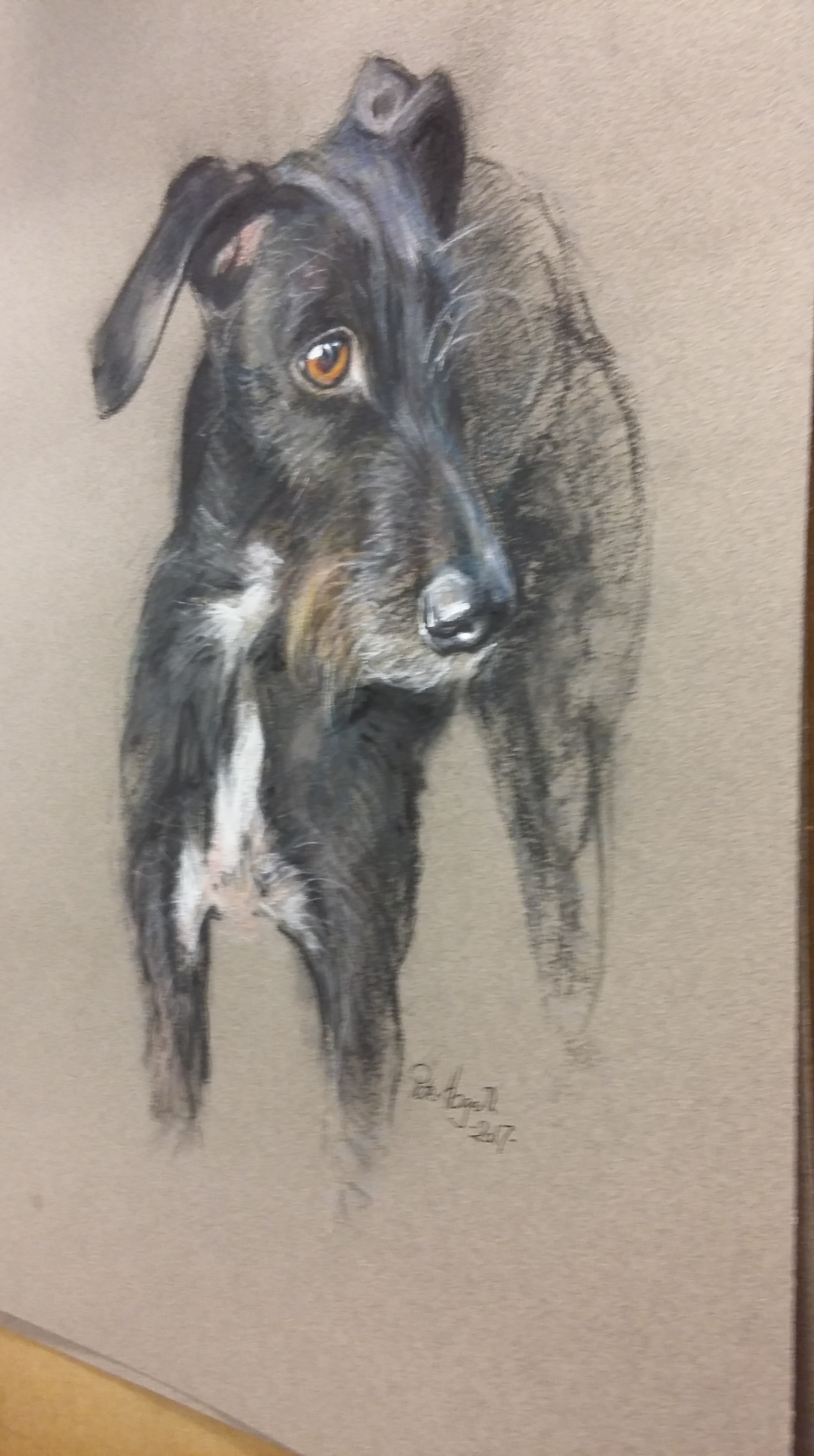 Lurcher in Pastel by Peter Hogarth – work in progress!