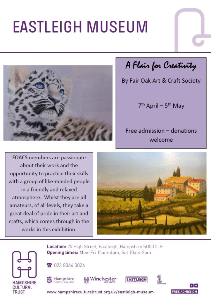 We are pleased to be exhibiting at Eastleigh Museum from the 7th April to the 5th May 2018